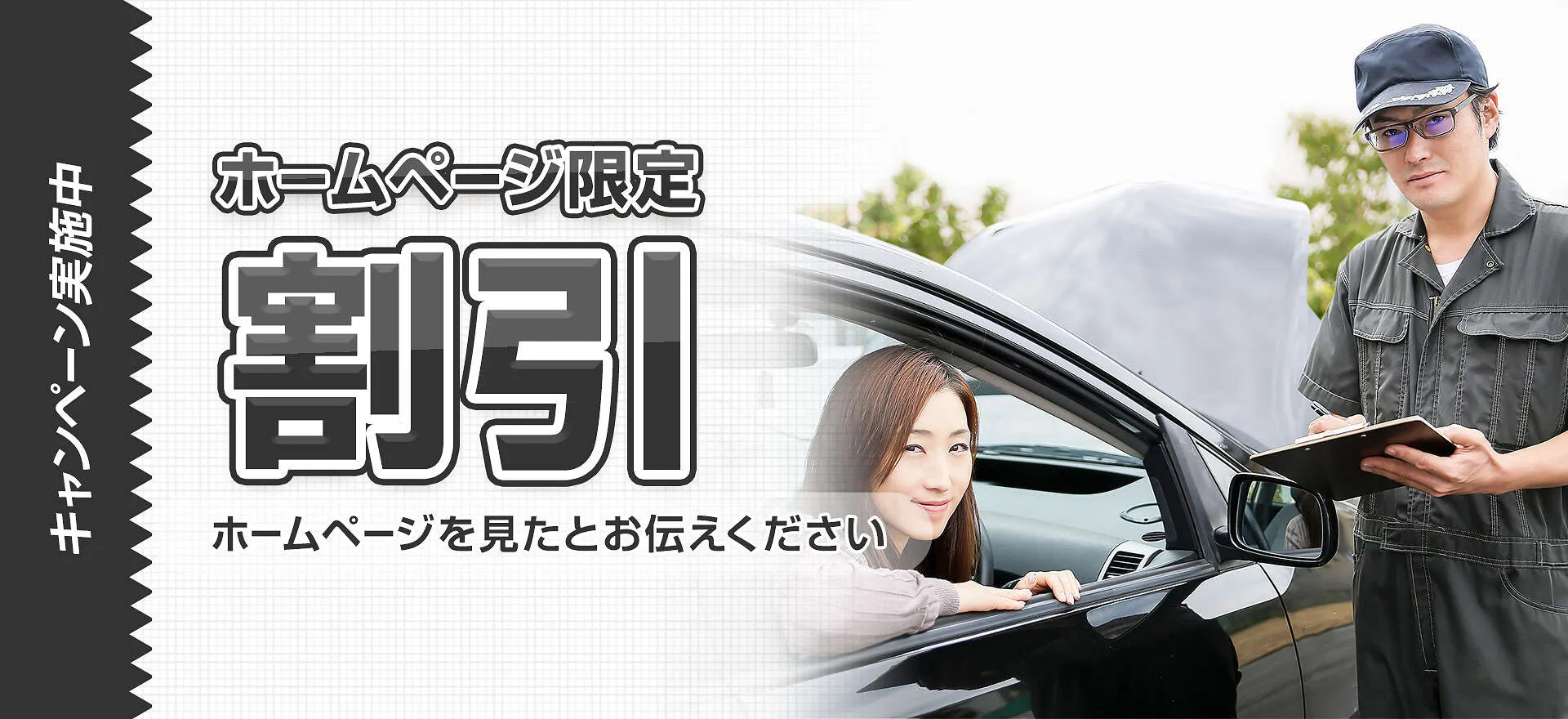 車検・点検などで来店される3ヶ月以上前に、このホームページからご予約いただきますと、作業工賃から10%割引いたします。