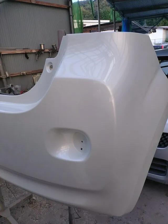 工場の一角で、ポルテのバンパーが静かに仕上がりを待っています。